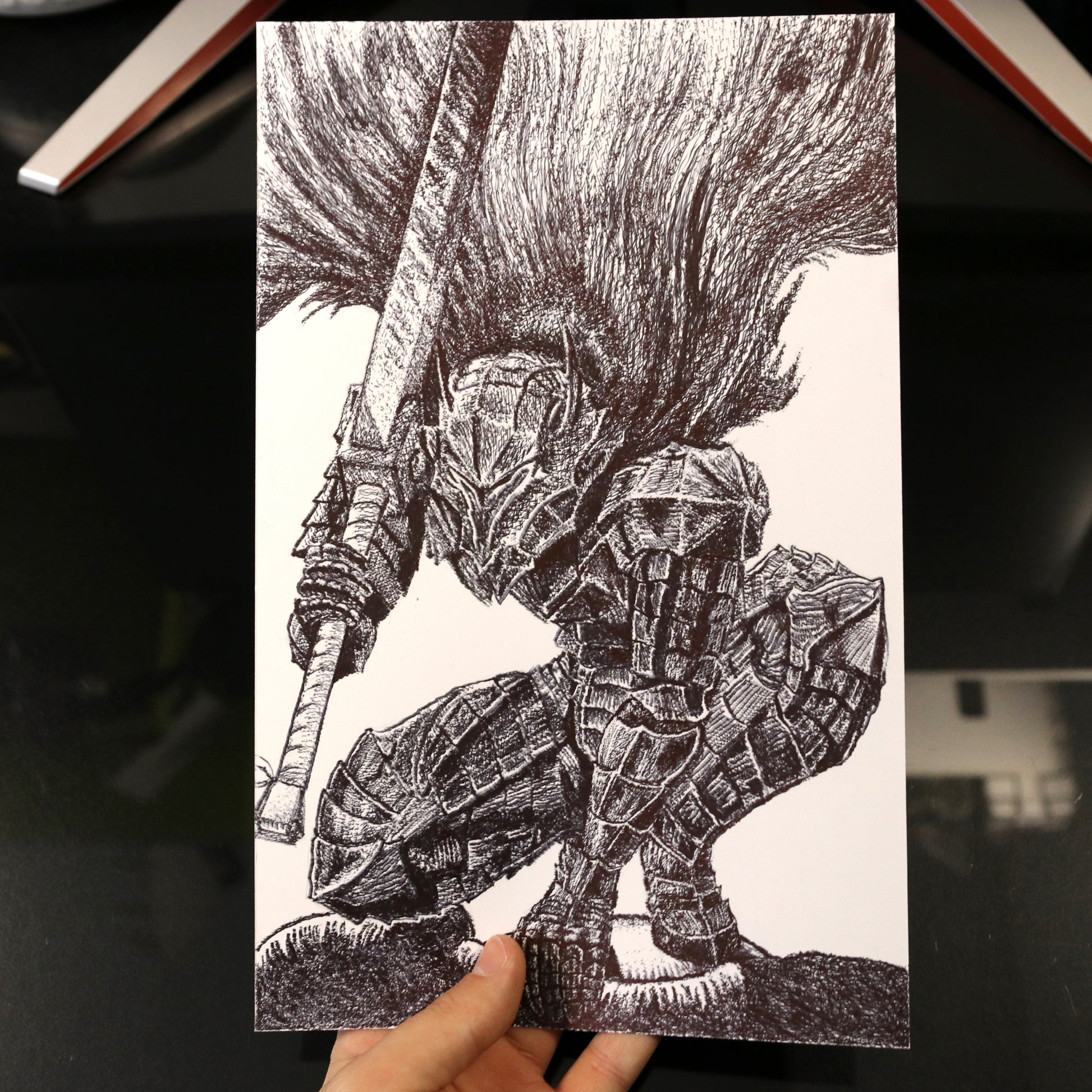 Dibujo Guts Berserk hecho con bolígrafo negro (concretamente con lápiz vibratorio del juego "Shaky Sketch"