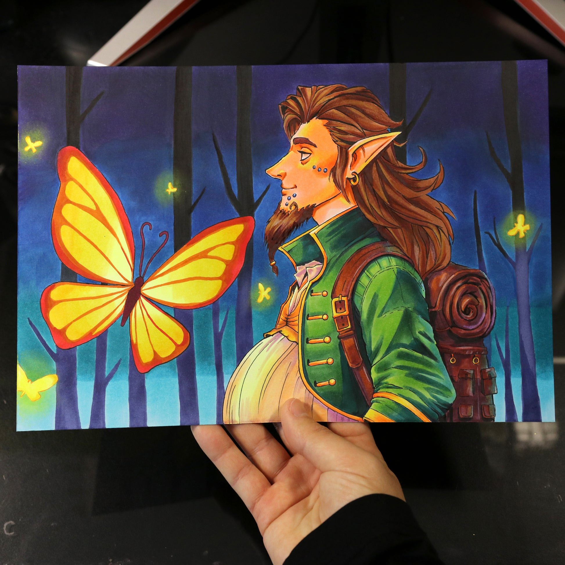 Dibujo original "Elfo en el bosque"
