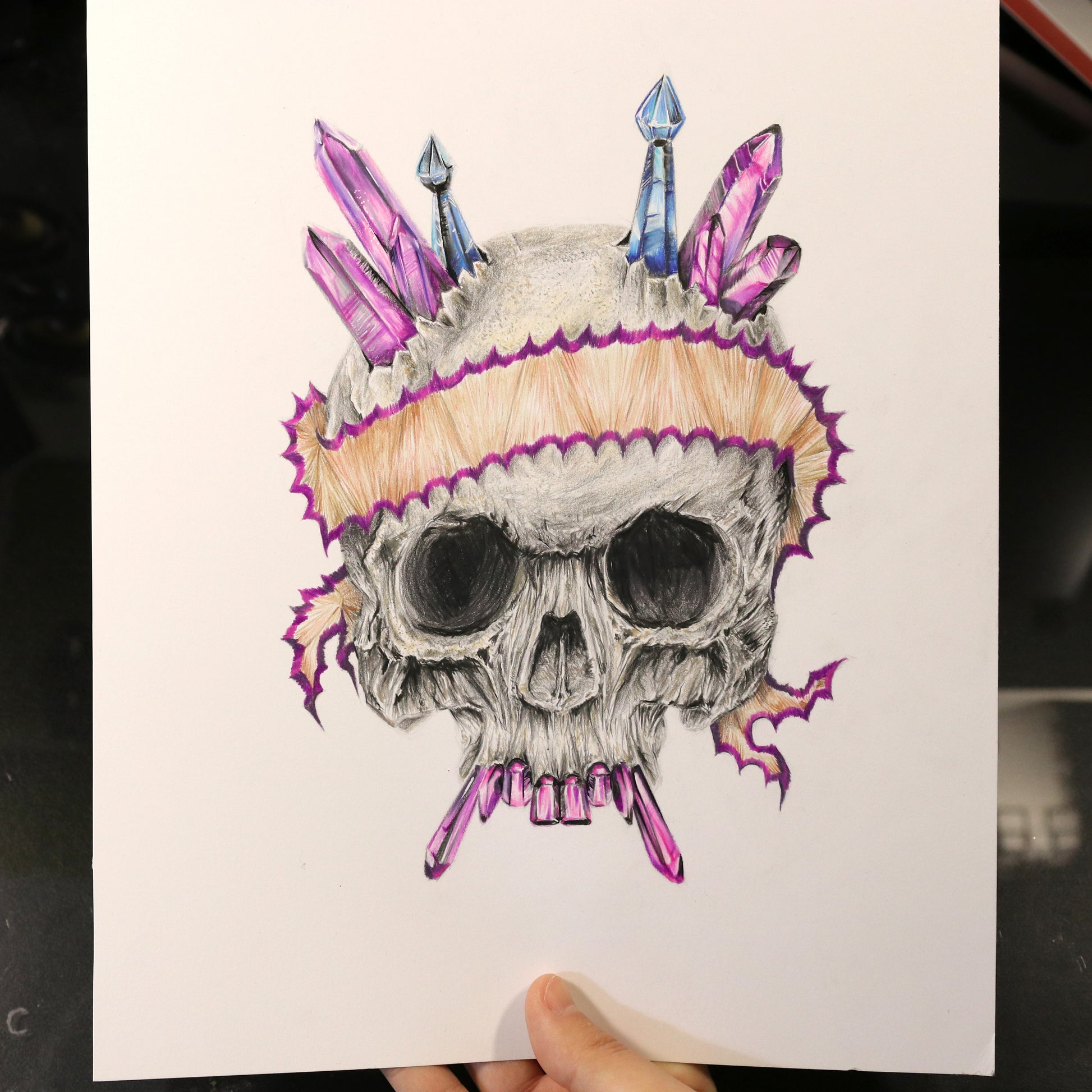 Dibujo de Dibujo original Calavera con Esmeraldas realizado con lápices de colores.