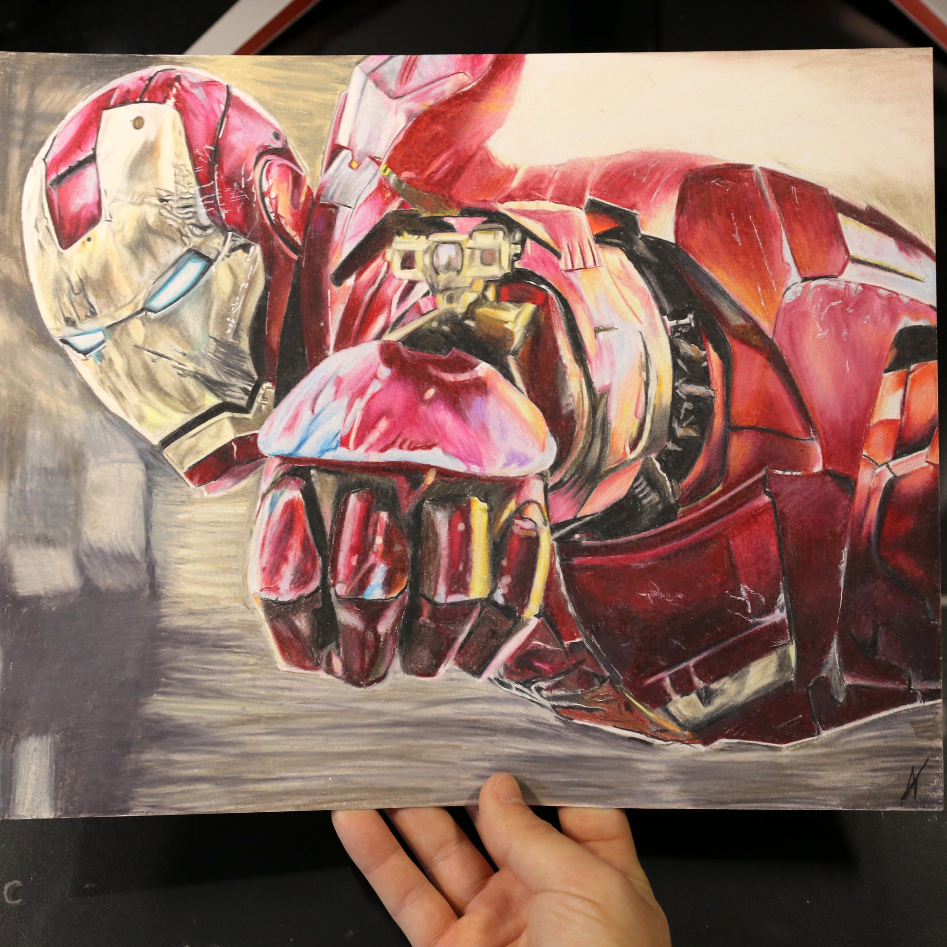 Dibujo de Iron Man realista realizado con lápices de colores.