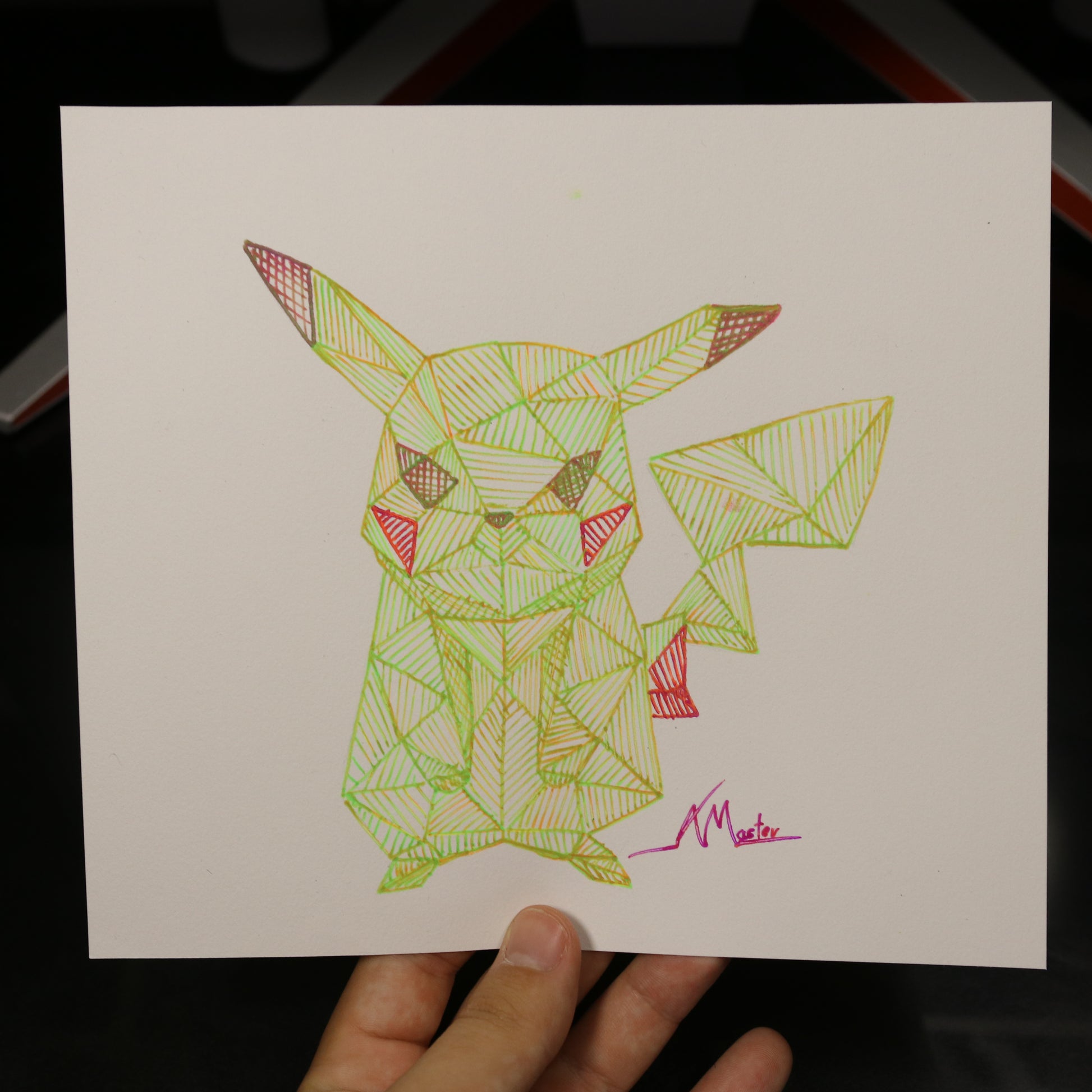 Dibujo original de Pikachu Zentangle (pokemon), realizado con delineadores Multicolor.