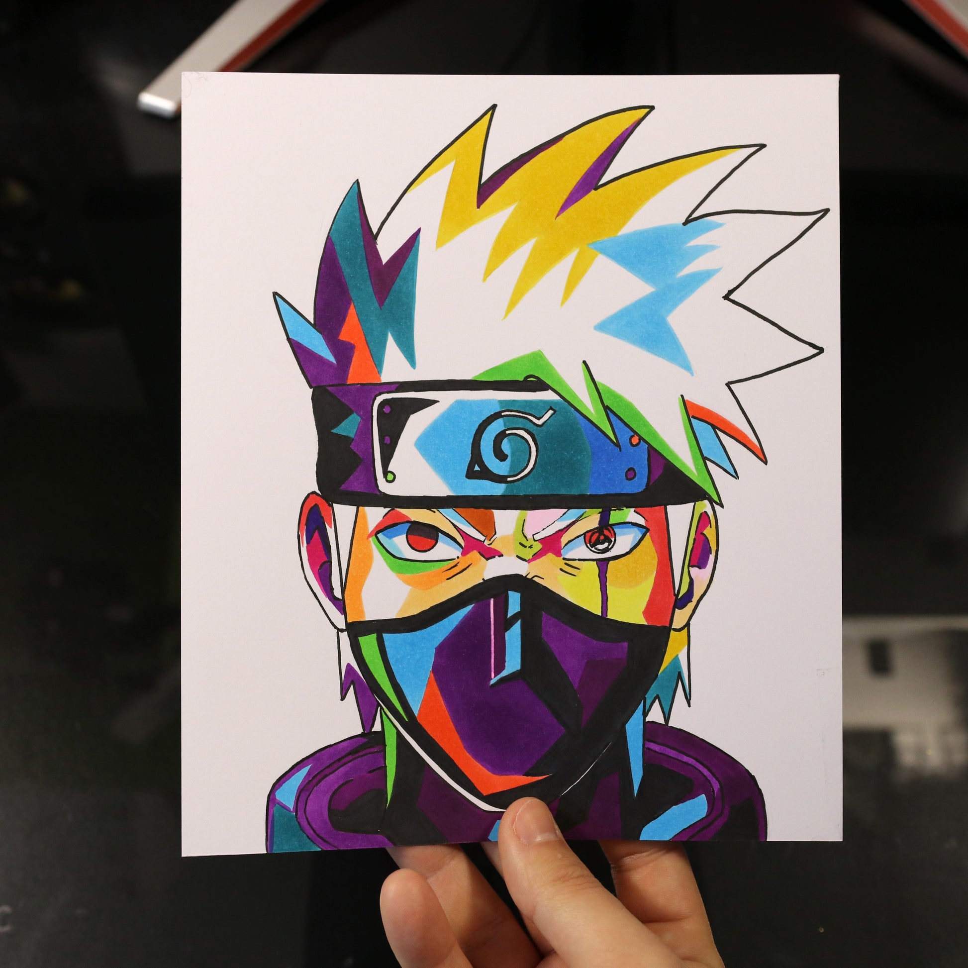 Dibujo de Kakashi estilo Pop Art realizado con marcadores base alcohol.
