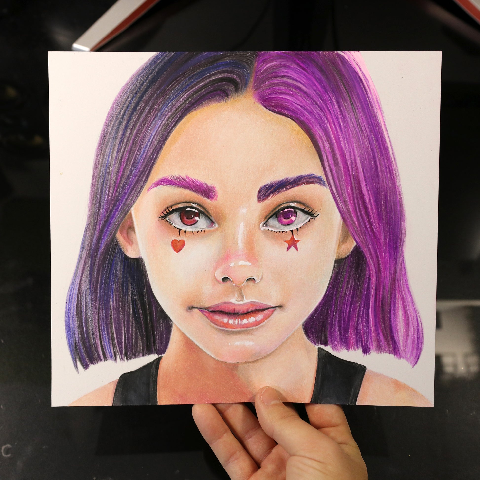 Dibujo de Chica con Pelo Bicolor con lápices de colores.