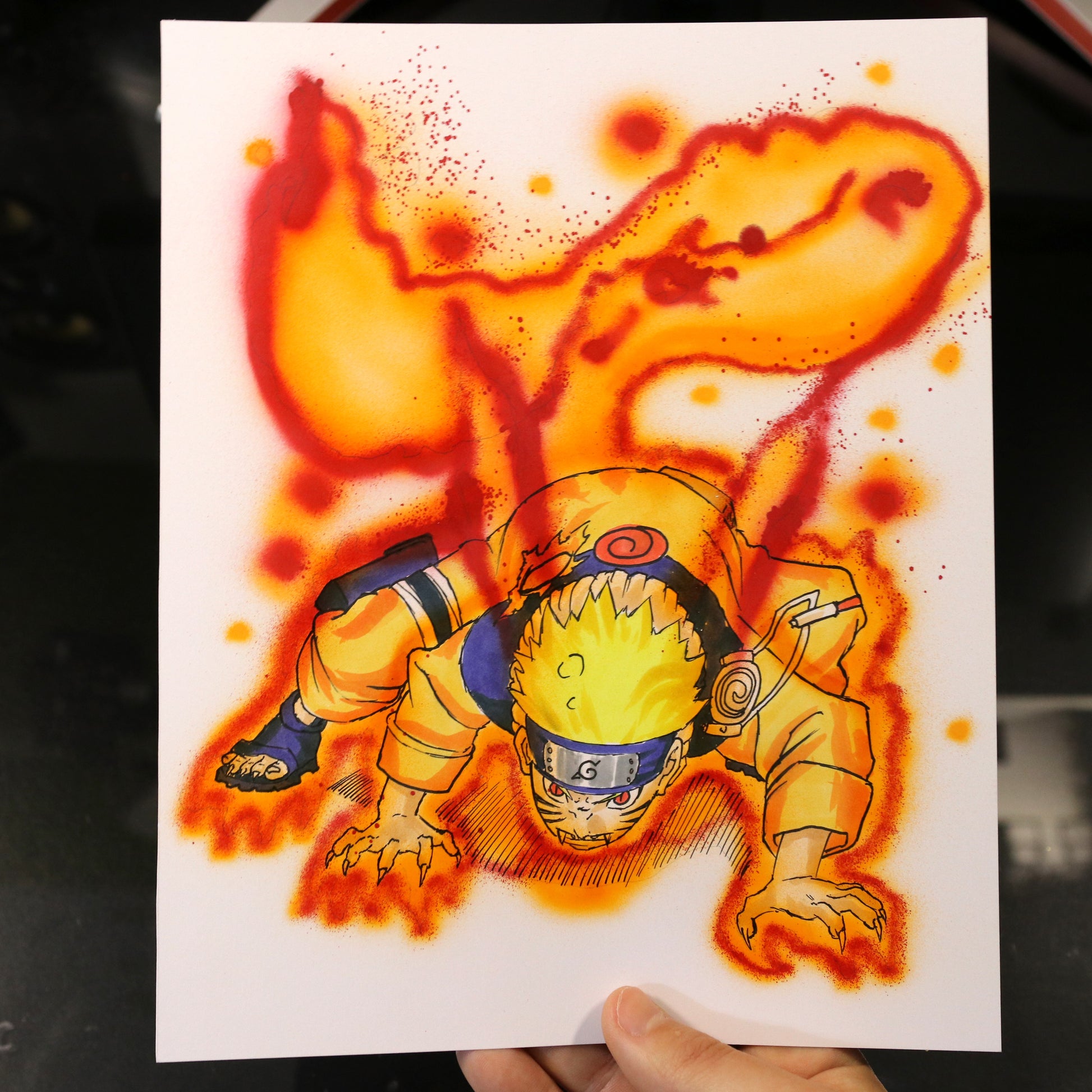 Dibujo de Naruto zorro realizado con marcadores base alcohol y aerógrafo.