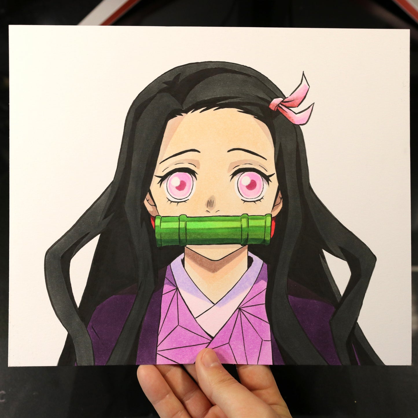 Dibujo de Nezuko realizado con marcadores acrílicos.