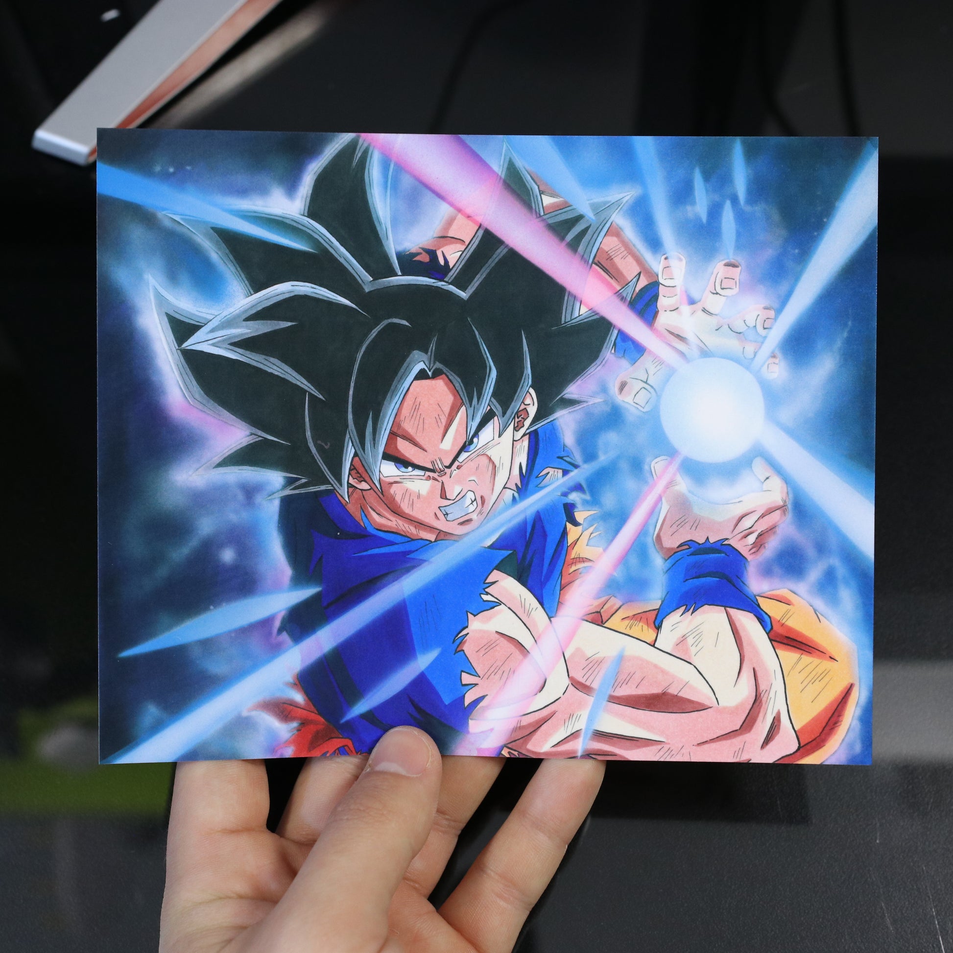 Print Goku Ultra Instinct lanzando un Kamehameha (la foto de muestra es tamaño A5)